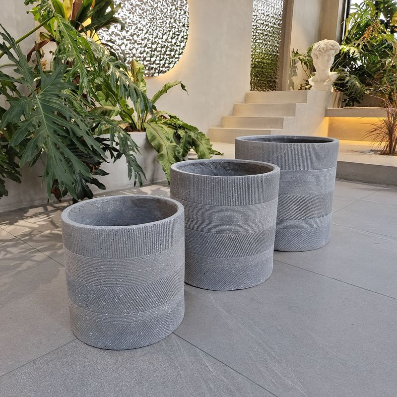 Os Plantadores de Fibra de Barro vêm em dois tamanhos:A:D450*H450B:D390*H390C:D330*H330A superfície texturizada dos plantadores acrescenta um toque de elegância e sofisticação a qualquer ambiente.